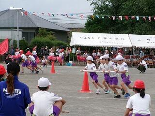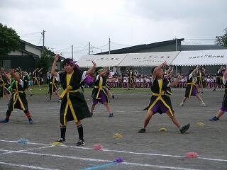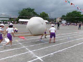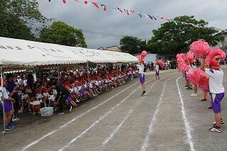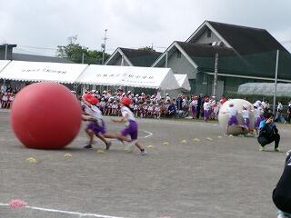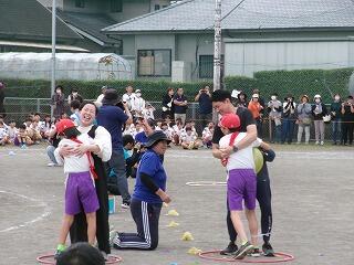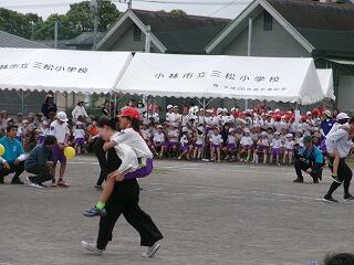 競技の部ではかけっこ・リレーなどの「走」では1位の子どもはぶっちぎりでゴールを駆け抜け、2位以下の子どもは前の選手の背中を最後まで追いかける姿が見られました。団技の部では1年生は「玉入れ」をしましたが、競技の前に踊ったマルモリダンスがとってもかわいかったですね。でも、いざ競技が始まると、みんな真剣に中央の籠を目がけて、おじゃみを投げ入れ、大接戦でした!後片付けまでみんなで協力して、すばやくできてすばらしかったです。2年生は「大玉転がし」をしました。風のせいで思うように大玉が転がらない場面もありましたが、チームで力を合わせ、何とか次につなぐ姿が見られました。抜きつ抜かれつのデットヒートでした。4年生の団技は台風の目「三松っ子タイフーン」でした。予行では、コーンを回ったり、団で小さくまとまって棒を跳び越えたりすることがうまくできませんでしたが、根気強く反復練習をした結果、今日は赤団も白団も、 キビキビと動き、ゴールするまでの時間がとても速くてびっくりしました。こちらも大接戦でした!6年生の三松ンピックは、最後の29人30脚まで勝敗がもつれ、タッチの差で白団が勝ちました。クラスが1つの塊になって、みんなで声を掛け合い、一列に並んで前進する姿はクラスの絆を感じ、とっても感動的でした。6年生の親子団技も白熱しました!親子で風船を挟み、ちょっぴり照れくささもあったでしょうが、ギュッとしてバーン!としたことはきっと一生の思い出になるでしょう。「表現」では3年生のジョイフルは、リズムにのって、ボンボンをふりふり、笑顔いっぱいで踊る姿が見られ、とってもかわいいダンスでした。最後の隊形移動も見事でした!練習の成果がバッチリでていましたね。5年生のソーラン節は気合が入っていましたね。私の目では今日が今までで一番の出来でした。衣装の着替えも素早くでき、「どっこいしょ、どっこいしょ」「ソーラン、ソーラン」と掛け声をかけて踊る姿はとっても勇敢でした!翔舞会の皆様のご指導の下、三松小の伝統を受け継ぎ、今年も踊りを披露することができてよかったです。