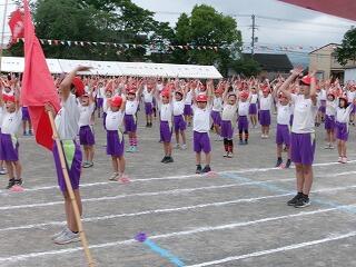 5月26日(日)雲がグラウンドを厚く覆い、風が吹く中、今年の運動会を開催しました。熱中症の心配のいらない最高の日和でした。子どもたちは団長、リーダーを中心に各団ともによくまとまり、開・閉会式の態度、団のテントでのマナーがとてもよかったです。