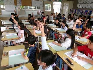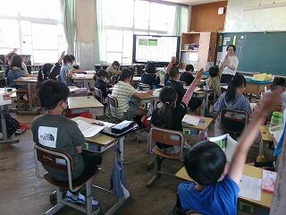 5月30日(木)、小林市商工観光課の方を講師としてお招きし、3年生はホタルについて学びました。写真資料をスライドで提示され、Q&A方式で丁寧に説明して頂きました。「なんでホタルって名前なの?」「ホタルの種類は?」「ホタルはなぜ光る?」、、、等たくさんのことを学びました。興味深い内容に子どもたちは目をキラキラ輝かせて話を聞いていました。今日1日で、ホタル博士になったようでした。授業の後は、講師の方を玄関まで見送る子どもがたくさんいて、別れを惜しむほどでした。すてきな時間だったのですね!3年生の子ども達は「小林おうえんだん」というこすもす科の単元の学習で、小林市のこと(施設や自然等)について調べ、まとめていきます。今日の学びが今後の活動に大いにつながることと思います。