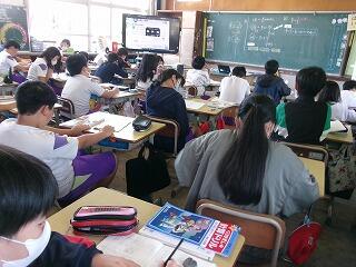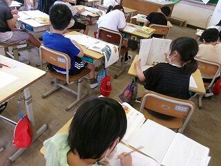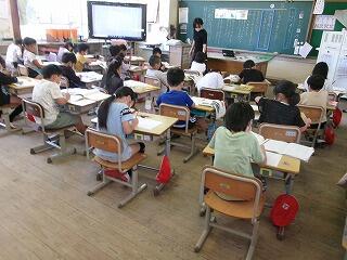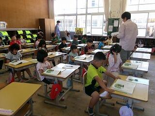 観察してまとめたシートを実物投影機で大きく映して発表したり、国語科の物語文を聞いて、話の内容を確認したり、漢字の書き取りの練習をしたりしていました。