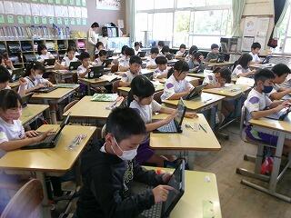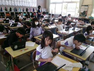 5年生は運動会の振り返り(目標と実際の取組の反省)や国語科の漢字の学習に取り組んでいました。