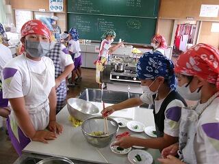 試食させていただくと、とってもおいしかったです。ぜひ、家庭でも子どもたちに調理するチャンスを与えてください。学校でつくりかたを習い、家庭で家族のために、自分だけの力で調理できてはじめて家庭科です!