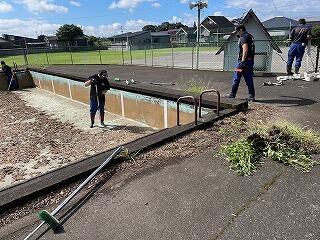 7月21日(日)、三松地区の消防団の皆様にボランティアで、大プールの清掃をしていただきました。
