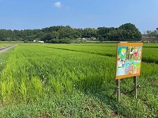 国道からわずか10分歩いただけで、一面に緑!三松地区は都市部と農村部の両方があり、自然豊かでいいですね!空にはトンボが田んぼの上を気持ちよさそうに飛び回っていました!ところで、トンボと田んぼ、名前が似ていますね!トンボという名前は、田んぼで生まれて田んぼで飛ぶから「飛ぶ田んぼ」、それが変化してトンボになったと言われるくらい、トンボは田んぼと密接な生き物です。春の終わりに田んぼに水が入ると、去年の秋に産んだ卵が孵化して幼虫のヤゴとなります。ヤゴは水中で成長し、稲が大きく育ってきた夏の初めに稲の茎につかまって羽化してトンボとなります。そして、実りの時期に田んぼに戻ってきて、水田の水たまりに産卵します。泥の中でトンボの卵は冬を越し、春に水が張られるのを待ちます。トンボは田んぼの一年に合わせてうまく生活している生き物なのですよ。