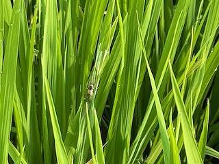 わたしが田んぼのあぜ道歩く度に、たくさんの虫がパッと飛び上がり、わたしが立ち止まると、みんな稲の葉の裏につかまり隠れます。まるで、「だるまさんがころんだ」をしているようでした!