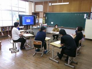放送を耳で聴きながら、教室で集会活動を行う様子です。1年生です。みんな姿勢がいいですね!