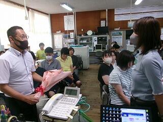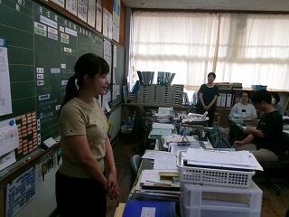 全校朝会で、給食業務に携わる職員の入れ替わりについて伝えました。学校を去られる職員は、八重尾彩夏先生、学校に戻ってこられる職員は、徳永亜美先生です。八重尾先生には昨年9月から約1年間、給食業務や食育業務で力を尽していただきました。本当にありがとうございました。徳永先生は、育休後、約3年ぶりの学校復帰です。これから、おいしい給食を何卒よろしくお願いします。