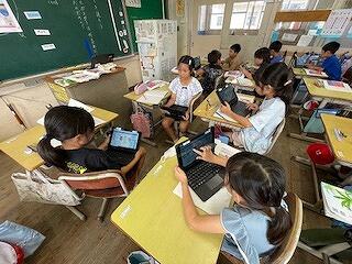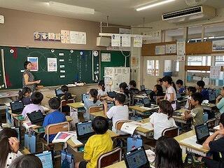 1年生の学びの様子です。国語の説明文の学習では、イメージを膨らませるために動画を視聴したり、教科書を参考にして、今後自分が選んだ生き物について、説明文にまとめる方法などについて話を聞いていました。図工科では「はこでつくったよ」という学習で、箱の形や色から思い付いたものを表すために、設計図的なものを紙にかいていました。みんな頭をひねりながらも、つくりだす喜びを味わっていました!