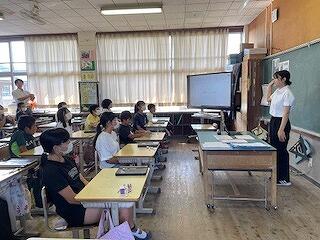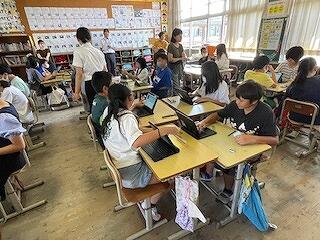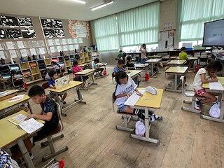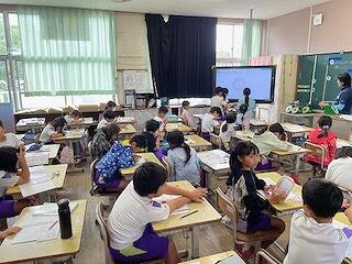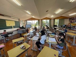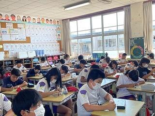 5年生は、外国語科の時間では「Can you~?」の尋ね方を習い、ペアで交流していました。楽しく活動できていました!音楽科では「ハロー・シャイニングブルー」の合奏をしていました。パート別に分かれて歌う練習をし、その後、合わせて歌っていましたが、ハーモニーがとても美しく、その声が廊下をつたって広がり学校中がすてきな音に包まれました!いい歌です!保護者の皆さまにも聞かせてあげたいくらいです。理科では台風がどのように発生するか、また台風でどのような災害が起きるかを動画を視聴しながら考えを深め、まとめをしていました。