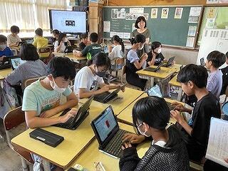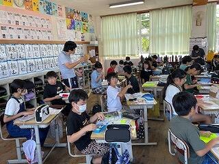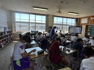 6年生は、読書感想画の仕上げや前日来ていただいたマイスターへのお礼の手紙を書いていました。読書感想画は本を読んで心に残った場面を絵に表す学習で、タブレットがない時代は、本当に絵を描くのが大変でした。今は、描きたい人物や風景等の構図の参考に、タブレットをいかせるので便利ですね!
