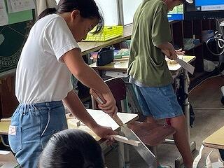 4年生は図工科の学習で、のこぎりや金づち、くぎを使って作品をつくっていました。何ができるでしょうか?ギコギコいい音が響いていました!教室が木工場みたいになっていました!道徳科では読み物資料を通して、学級のよさについて深く考えていました。みんな真剣でした!