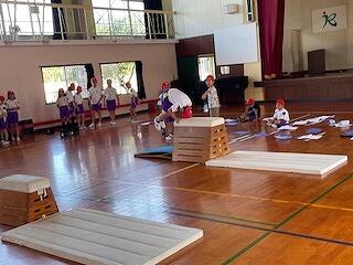 3年生は運動場で鉄棒運動、体育館でマット運動に取り組んでいました。どちらの運動も、友だちに応援してもらいながら技を磨いていました。足掛け上がりに逆上がり、開脚飛びに台上前転、、、教え合い、励まし合いが見られました。できなくても、繰り返し繰り返し挑む姿がすばらしかったです!