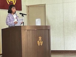 その後、学習指導部長の先生から「学習の約束(1分前着席、チャイム黙想)」についての話がありました。「1分前着席」や「チャイム黙想」ができるようなると、集中力が身に付き、心が落ち着いて、できることが増える効果があるそうです。落ち着いて授業の臨めるように、みんなで約束を守っていきたいですね!最後に、みんなで校歌をうたって、式を終了しました。