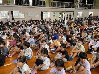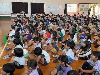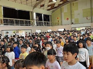 10月11日(金)に1学期の終業式を行いました。まず、3年生と5年生の代表児童が1学期にがんばったことと2学期に努力したいことを作文発表してくれました。2人ともしっかりと自分の考えを述べることができ、立派でした。校長の話では101日間(1年生は97日)まずはよくがんばったと、ほめました。通知表で自分自身の1学期間の学習面や生活面を振り返り、◎は頑張った自分をほめ、〇は◎に、△は〇になるように、何をどうがんばればよいかを考える秋休みにしてほしいと話しました。その後、生徒指導主事から、秋休みの生活についての話がありました。長期休業前はいつも「ひ・み・こ・む・し」の合言葉で指導をしますが、今回はその中から「こ」と「し」をピックアップし、こ:交通安全に気を付けましょう!し:知らない人に会ったら、「いかのおすし」を守りましょう!と注意しました。明日より4日間の秋休みが始まります。秋休みには二学期 の学習の準備と心構えをきちんと整え、身の回り(机の中)の整理整頓をしたり、1学期の復習をしたりする等、有意義にすごしてほしいと思います。