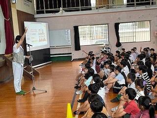 いつもより集合が早く、しかも静かに待てて立派でした!校長は電話対応があって、体育館へ向かうと、全員揃っていてびっくりでした!みんな静かに待っている体育館へ、一番最後に校長は恥ずかしそうに入りました!すみません。
