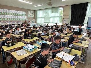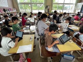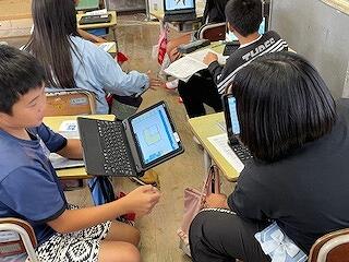 3年生がタブレットをつかって、沈黙の中、パチパチ何かに取り組んでいました。