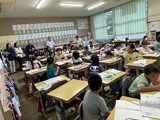 10月22日(火)、委員の皆様6名とともに、第2回学校運営協議会を開催しました。まず、すべての学級の授業風景を参観いただきました。次に、今年度が始まって半分過ぎた学校の状況(知育、徳育、体育、食育等)を学校から説明し、さらによりよい学校経営に向けてご意見をいただきました。授業参観されての感想として、「子どもたちの姿勢がいい」「整理整頓が行き届いている」「担任のカラーがクラスのよい雰囲気に影響を与えている」「掲示物に学びの足跡がしっかり残されている」などのご意見をいただきました。協議では、学校運営に関する保護者アンケート及び職員アンケート結果をもとに話合いを進めました。正しい鉛筆や箸の握り方、文字の丁寧さについては学校だけで教えるのではなく、家庭と一緒に身につけさせていくこと(家庭での学びの場)が大切である、自力登校をしないことの影響、むし歯治療は親の責任、早寝・早起き・朝ご飯及び睡眠の大切さ、人の役に立つ人間になりたいと思える気持ちを育てる社会体験の大切さなど、今の子どもの姿だけでなく、10年後の子どもの姿をイメージして、子どもに関わっていくことについて深く協議できました。いただいたご意見を学校全体で共有し、2学期以降の学校運営に反映させていきたいと思います。