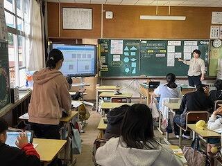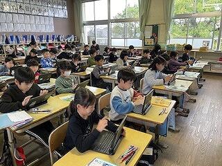 5年生は社会科の学習で貿易によっておこる問題について学習していました。貿易摩擦という言葉が出てきていました。世の中の状況が目まぐるしく変わり、貿易についても今後、国の動向や世界情勢が心配される状況のため、タイムリーな学習になったと思います。アメリカや中国などの国と、どのように貿易を進めていくのかによって、私たちの生活も変わってきます。5年生にはしっかり勉強して、国を豊かにできる人材に育ってほしいです!理科の学習では、電磁石について動画をみながら、コイルの巻き数と強さの関係を確かめていました。