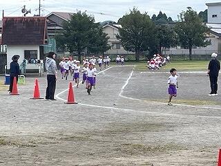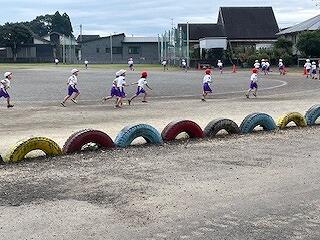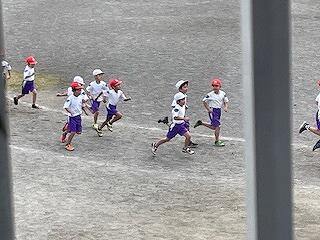 1年生が運動場で、グラウンドを走っていました。11月29日の中距離走大会に向けての練習のようです。途中、苦しくて泣きだしそうになりながらも、歯を食いしばり頑張る姿が見られました。