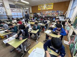 11月26日(火)にみやざき小中学校学習状況調査を第4学年で実施しました。本日は国語科のテストを行いました。今年度は初めてタブレットを活用してCBT方式「(Computer Based Testing):コンピュータを利用して実施する試験方式」での実施となりました。本校はeライブラリー(タブレット活用AIドリル)を採用しているため、タブレットを使って解く経験は他校よりはありますが、慣れないテストの形式に少しだけ戸惑ったことと思います。しかし、児童は時間いっぱい今持っている力をフル稼働させて問題に挑むことができました。明後日は算数科のテストがあります。本テストの結果分析を通して、授業改善に役立て、学力向上を目指す県の施策としての実施でありますので、結果分析をもとに、分かりやすい授業にさらに磨きをかけていきたいと思います。しっかり活用していきたいと思います。