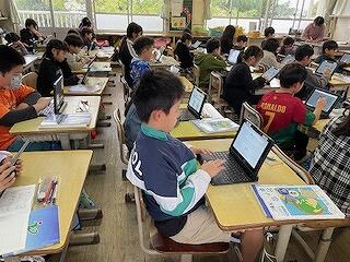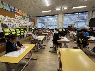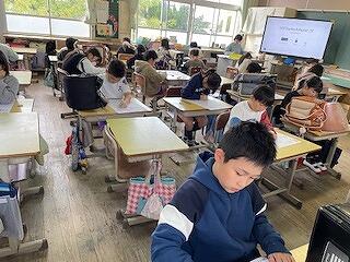 4学年は「みやざき小中学校学習状況調査」の算数科のテストを前回同様、タブレットでしていました。みんな、とても集中して問題に取り組んでいました。このテストは県内すべての小学4年生が実施し、その分析を県や市、各学校で行い、授業改善につなげていきます。
