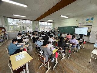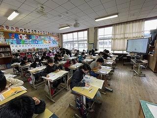 3年生の様子です。先生が月についての映像を実物投影機で見せながら、説明をしていました。テストの様子の写真は本日のものです。みんな真剣に受けていました!