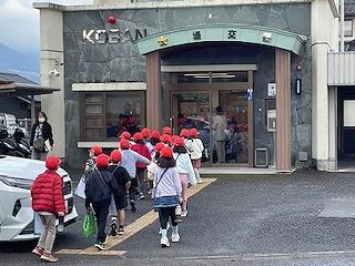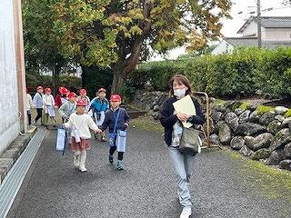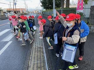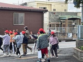 2学年は生活科の町探検で交番にいきました。おまわりさんの話をしっかり聞いて、警察の仕事について学びました。並んで歩く姿、きちんと整列できていて立派です。