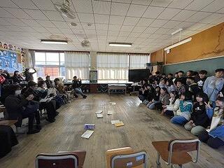 2月28日(金)、お別れ遠足がありました。まず、全校で5年生の運営委員会主催のレクレーションをしました。まずは5-2プレゼンツ「グループづくりゲーム」でした。リーダーが指示するお題に従って集まり手をつないで座るゲームです。「10人組」「好きな季節同士」「好きな天気」など、声をかけあってグループをつくります。1年生から6年生まで異学年で集まる様子は微笑ましいものでした。次は5-1プレゼンツ「少数決」でした。問いに従って、2つのグループに分かれますが、少ない方が勝ちとのこと。負けた人たちは隅にいき、最終的にもっとも少数意見をもっていた人が勝つというゲームです。「食べるならどっち?きのこの山orたけのこの里」「行くならどっち?水族館or動物園?」など、どんどん進んでいき、最終的に1人になりました。最後は5-3プレゼンツ「〇✖ゲーム」でした。学校にゆかりのある問題(本をもっとも借りている人の冊数は260冊である、学校のTVの台数は24台など)が次々と出され、みんなで楽しみました。体育館は熱気ムンムン!1年生から6年生まで時間いっぱい笑顔で楽しみました。午前中の最初少し雨が降っていましたので、下学年は校内遠足として、学校の体育館やグラウンド、教室で遊びました。上学年は雨がやんできたため、地区体育館とグラウンドへ歩いていき、遊びました。お昼は外でシートを敷いて食べました。6年生とのお別れ、今のクラスの友達、先生とのお別れ遠足は、すてきな思い出の1つに数えられることでしょう!