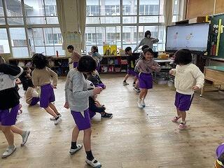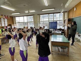 1年生は教室で大縄跳びをしたり、動画をみながら体を動かしたりしていました。みんないい笑顔でした!