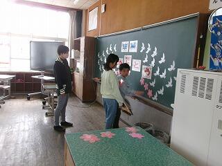 3月24日(月)卒業式の前日準備を行いました。5年生と職員で行いましたが、1~4年生も清掃等がんばってくれました。