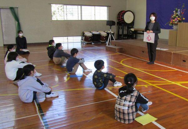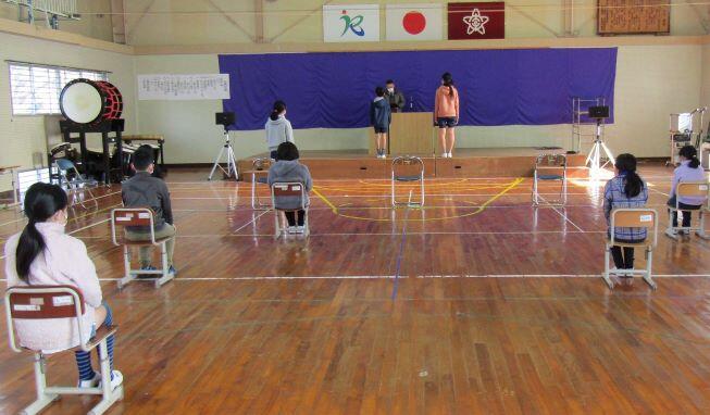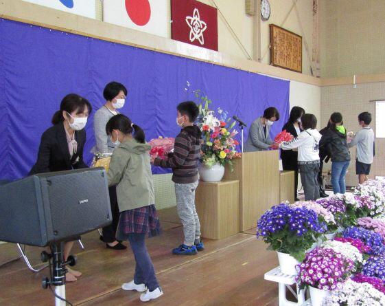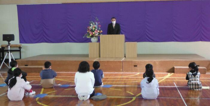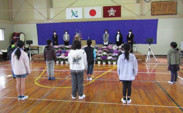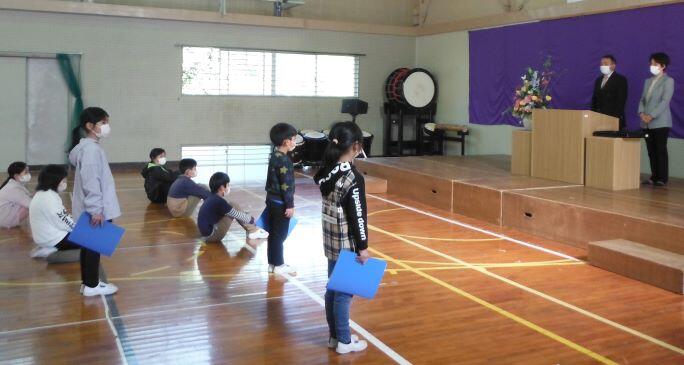 次は子どもたちとのお別れです。体育館の後方には、PTA役員の方や保護者の方も数名来校されていました。朝、子どもたちが