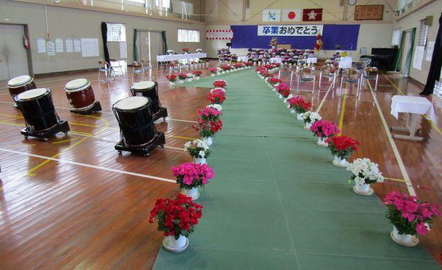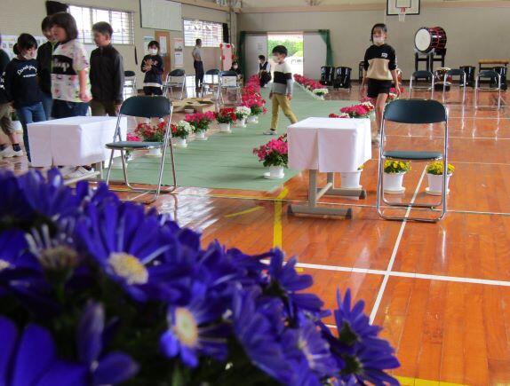 本校は翌日が卒業式ということで、準備をしました。少ない人数ですが、子どもたちは一生懸命、6年生のために準備をしてくれました。おかげで、ステキな式場ができあがりました。当日が楽しみです!在校生のみなさん、先生方、用務員さん、ありがとうございました。