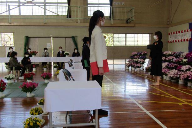 この日は修了式がありました。令和2年度の最後の日です。式でははじめに、修了証が子どもたち一人一人に渡されました。