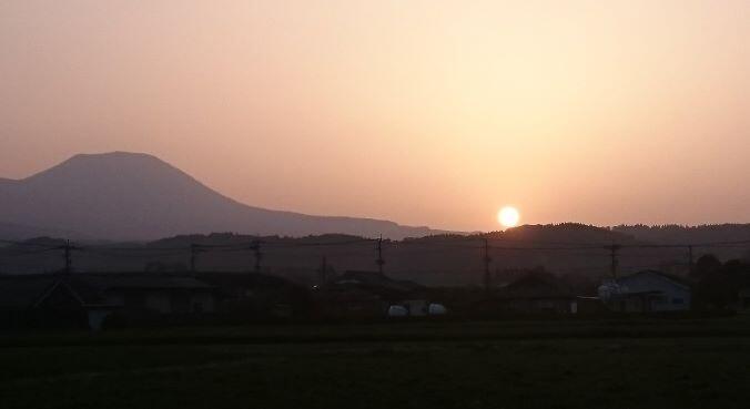 この日も黄砂が一日中、飛来するという予報が出ていました。朝から曇り空で、今にも雨が落ちてきそうでした。離任の涙雨になるかもしれませんね。前の日の夕陽です。黄砂のせいか、かすんでいました。黄砂がなければ、すごくきれいな夕陽だと思います。