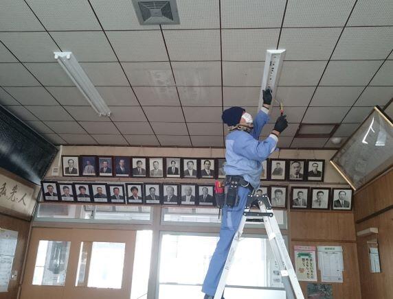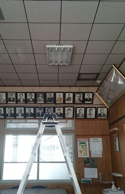 校長室の電灯を替えました。4か所ある電灯のうち、1か所だけ4本組みで、カバーがありませんでした。天井を