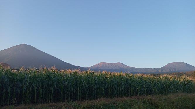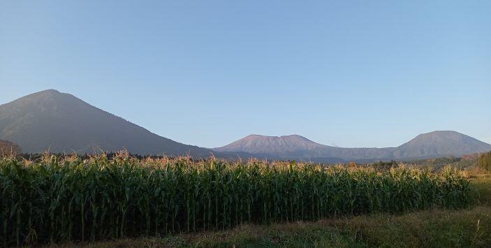 左から、高千穂峰、夷守岳、甑岳です。朝早くから農作業をしていらっしゃいました。お疲れ様です。