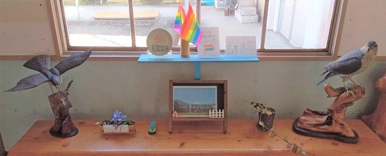 子どもたちにも近くで見てもらったり、触ってもらったりしてもらうために、校内に飾りました。