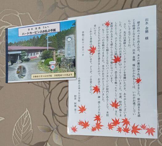 先生のお話の後、児童代表がお礼の言葉を述べました。すると先生から、子どもたち一人一人にメッセージの入った絵手紙をいただきました。