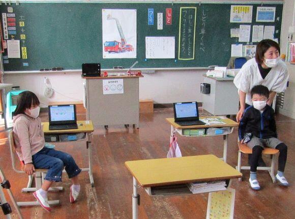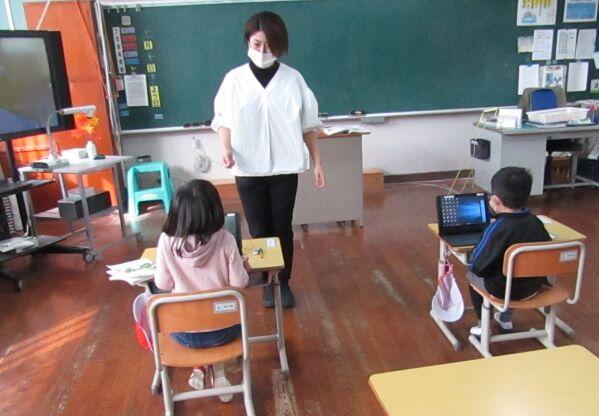 始まる前の様子は、少し緊張気味の1年生2名です!担任の先生が声かけして、ほぐします。(^^) さあ、始めましょう!