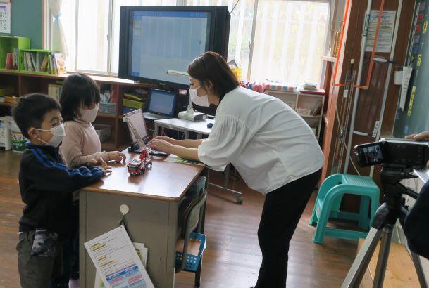 おもちゃの「はしご車」の登場です!おもちゃを見て、気付いたことなどを読み取ります!