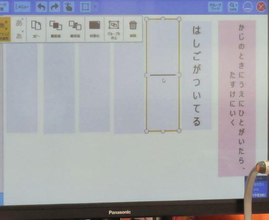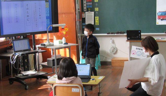 その後、発表します。これも表現ですね。詰まってしまったら、担任の先生が持っているものを見て、続けます。