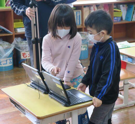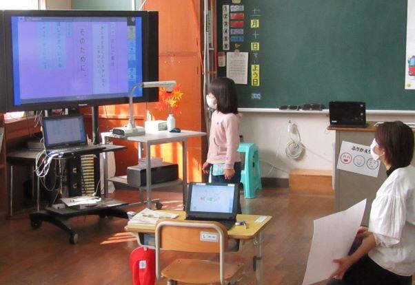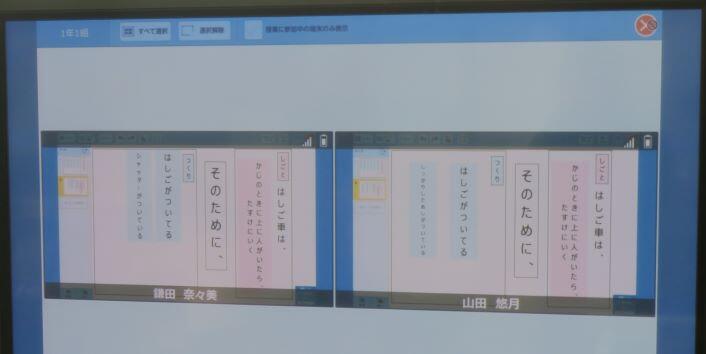 子どもたちが読み取ったことは、担任の先生がタブレットに打ち込みます。