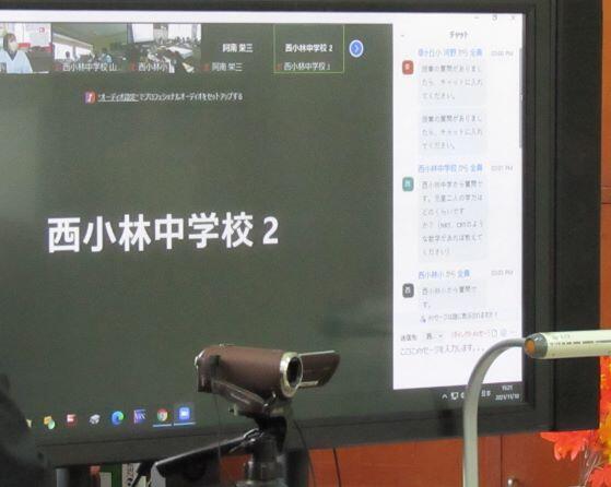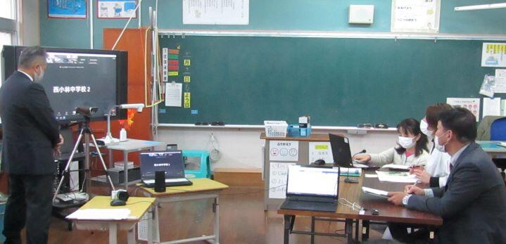 研究協議会です。西小、西中とつないで、オンラインで会を行いました。GIGAスクールサポーターの方にも来ていただき、