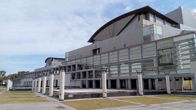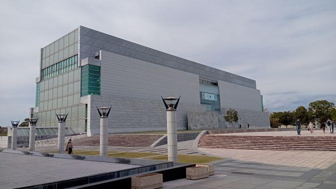 奥の方からはこんな感じでした。窓からは隣の県立美術館を見ることができます。外に出て、写真を撮りました。(^^)