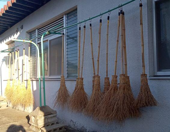 写真を見て何か気付かれませんか?そ~です!一番右のホウキの先がまるで、切りそろえたようになっていますね!