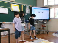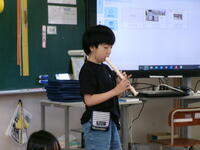 【7月7日】中学年の児童集会がありました。これまで学習してきたリコーダーの演奏や算数の「垂直と並行」、体育の「マット運動」、図工の工作のことを発表しました。実際に演奏したり、映像を使ったりして、堂々としたとても立派な発表でした。
