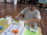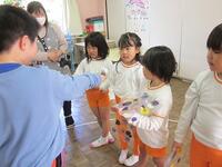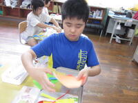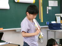 【10月2日】 生活科の学習でおもちゃづくりをしました。教科書にあるおもちゃの中から作りたいものを複数選んで活動しました。穴を開けたり、セロテープを貼ったりと細かな作業が難しかったようですが、試行錯誤しながらも、友達と一緒に楽しくがんばって作り上げることができました。作ったおもちゃで遊ぶときはとても嬉しそうでした。これから、作ったおもちゃを使って保育園生と交流をします。保育園生に楽しく遊んでもらうためには、どんなことを工夫したり、注意したりするとよいかを考える学習に移ります。がんばれ1・2年生!