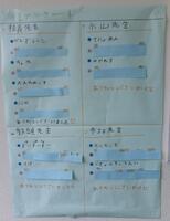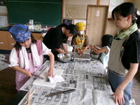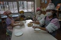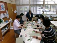 【10月21日】 参観日で行う畳作りの体験活動に向けて、講師の先生(生駒畳店・大岩根様)に頼んで、事前の練習を兼ねて職員で実際に作りました。畳の縁(へり)の部分の布を選び、30cm×20cmサイズの井草のござに大きな針で実際に縫い付け、かわいい畳が出来上がりました。自分で作った畳を見ながら、みんなとても嬉しそうでした。