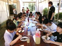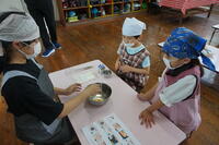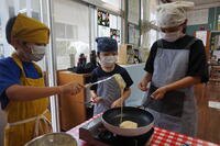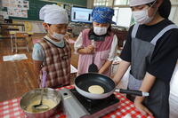 【7月16日】3年生以上で取り組んでいるクラブ活動でホットケーキを作りました。エプロンを着け、手を洗っていよいよ調理スタートです。先生からレシピと材料をもらい、後は自分たちで頑張って作ります。「これでいいの?」「次は?次は?」と不安そうな声も聞こえてきましたが、みんなとても楽しそうで、「おいしいホットケーキをつくるぞ!」とわくわくしながら作っていました。できあがったホットケーキは、12年生や先生方にも振舞いました。思った以上に時間がかかりましたが、できあがったホットケーキはとてもおいしく、みんな大満足でした!