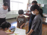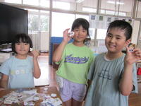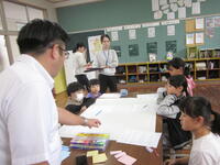 【8月2日】 夏休みが2週間ほど過ぎた8月2日に登校日がありました。久しぶりに子ども達の元気な顔を見ることができました。学校では、教頭先生から、「原爆」や「戦争・終戦」の話もあり、みんな真剣な顔で聞いていました。また、登校日終了後には、地域の方の主催で木工教室があり、木材をのこぎりや金づちを使って、親子で本立てを作りました。暑い中での作業でしたが、みんな上手に作っており、夏休みのよい思い出になりました。